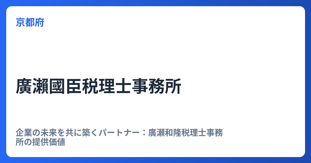 企業の未来を共に築くパートナー:廣瀬和隆税理士事務所の提供価値 経営を取り巻く環境が複雑化する現代において、企業が持続的な成長を遂げるためには、税務・会計の専門家による継続的かつ戦略的なサポートが不可欠です。愛媛県松山市を拠点とする廣瀬和... -
