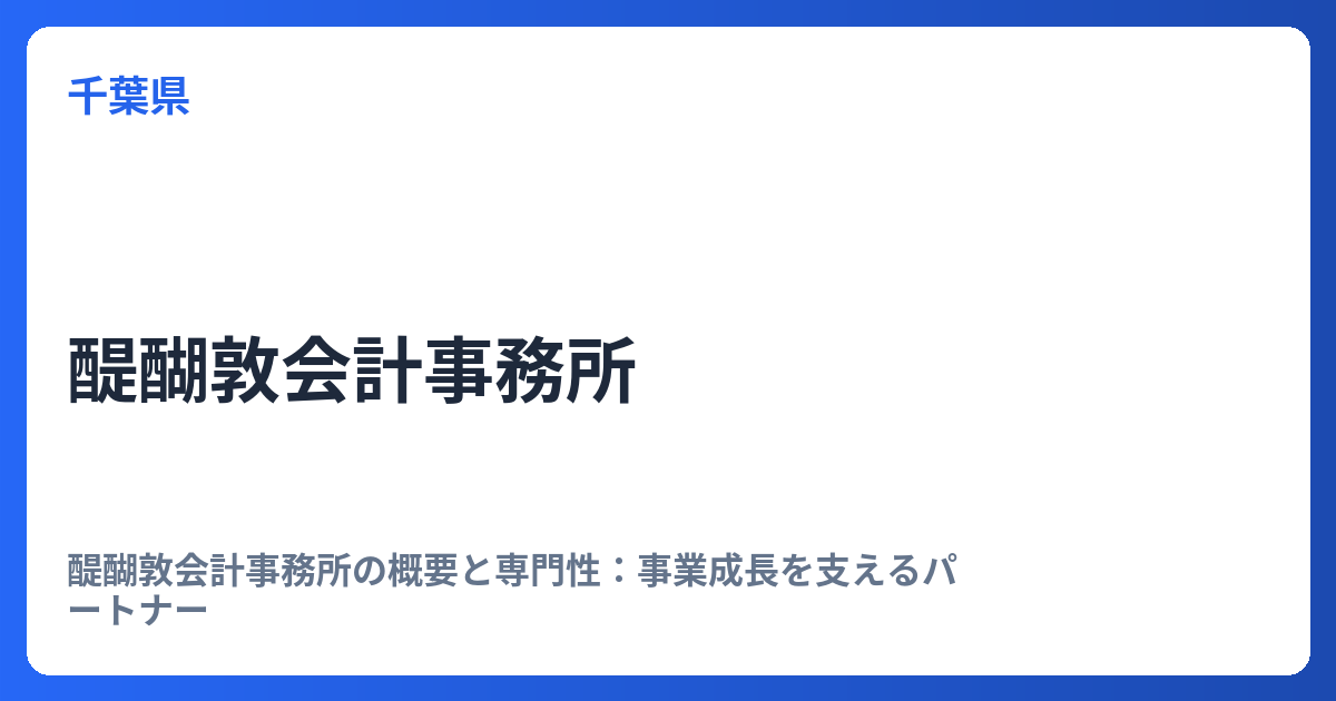 醍醐敦会計事務所の概要と専門性:事業成長を支えるパートナー 現代のビジネス環境において、企業が持続的に成長するためには、複雑化する税制や経営課題への的確な対応が不可欠です。そのような状況下で、質の高い専門的なサポートを提供する会計事務所の... -
