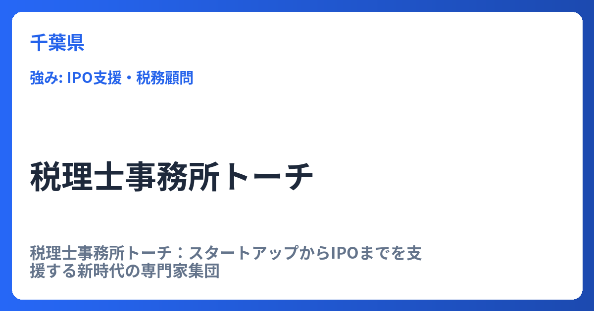 税理士事務所トーチ:スタートアップからIPOまでを支援する新時代の専門家集団 現代のビジネス環境は急速に変化しており、特にスタートアップや成長企業にとって、税務・会計のサポートは事業成功の鍵となります。そのような背景において、税理士事務所ト... -