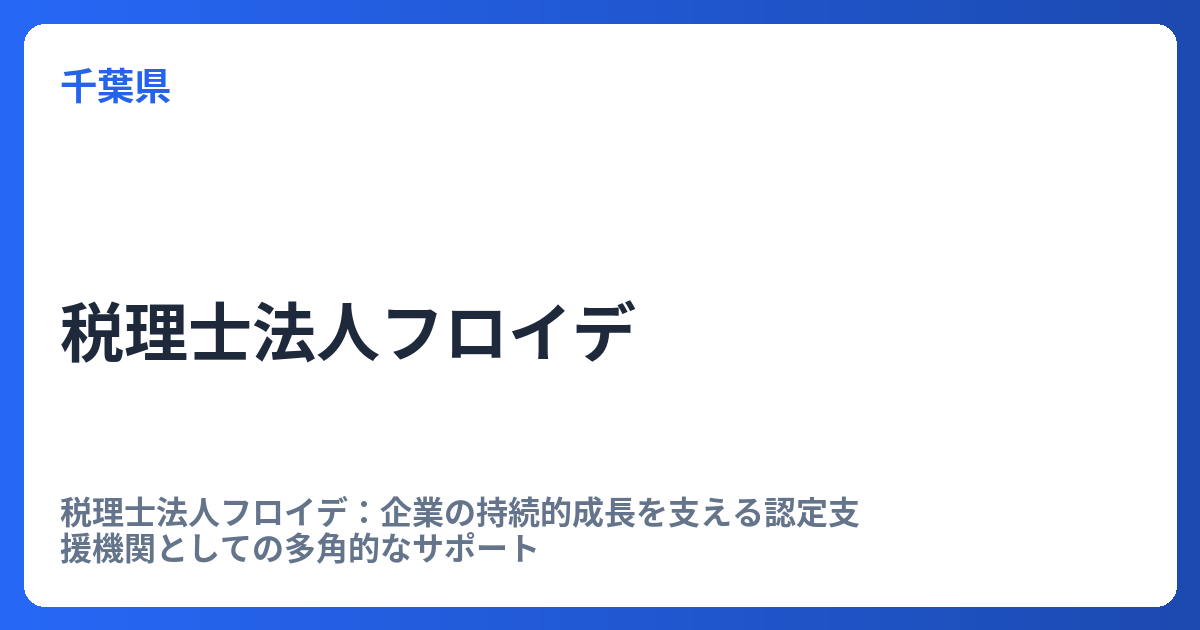 税理士法人フロイデ:企業の持続的成長を支える認定支援機関としての多角的なサポート 企業経営を取り巻く環境は常に変化しており、経営者は税務申告だけでなく、資金調達、事業承継、そして生産性向上といった多岐にわたる課題に直面しています。こうした... -