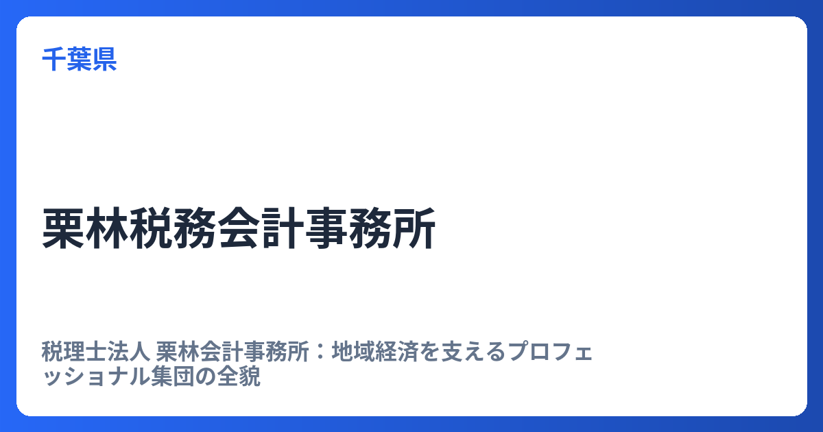 税理士法人 栗林会計事務所:地域経済を支えるプロフェッショナル集団の全貌 税理士法人 栗林会計事務所は、群馬県太田市に拠点を置く、地域社会の永続的な繁栄に貢献することを理念とする会計事務所です。特に、全国最大級の職業会計人集団であるTKC全国... -