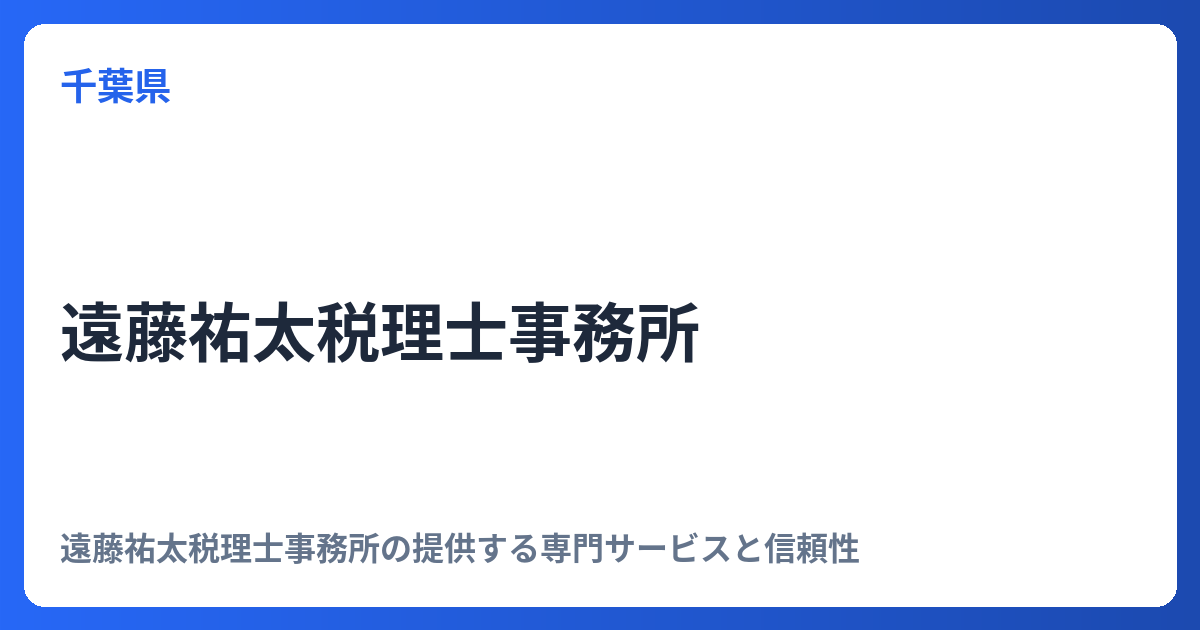 遠藤祐太税理士事務所の提供する専門サービスと信頼性 現代社会において、税務・会計の専門家である税理士事務所の役割は極めて重要です。企業経営者から個人の方まで、複雑化する税制への対応、正確な会計処理、そして将来に向けた適切な財務戦略の策定は... -