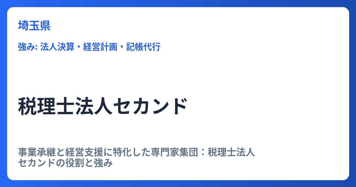 事業承継と経営支援に特化した専門家集団:税理士法人セカンドの役割と強み 企業経営を取り巻く環境が複雑化する現代において、税務・会計の専門家は単なる記帳代行や申告業務に留まらない、多角的な経営パートナーとしての役割が求められています。その中... -