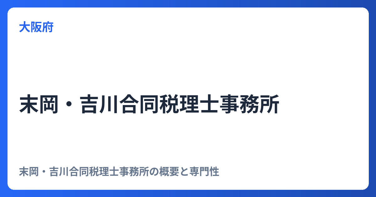末岡・吉川合同税理士事務所の概要と専門性 末岡・吉川合同税理士事務所は、経験豊富な二名の税理士が共同で運営する専門家集団です。合同事務所の形態をとることで、個々の税理士が持つ専門知識や得意分野を結集し、より多角的かつ質の高いサービスを提供... -
