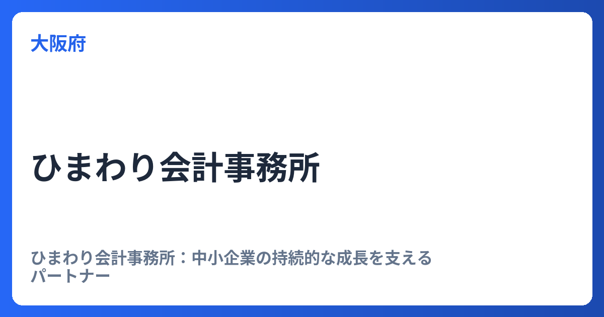 ひまわり会計事務所:中小企業の持続的な成長を支えるパートナー ひまわり会計事務所は、単なる税務・会計の代行業者にとどまらず、顧問先企業の持続的な成長を共に実現していくことを使命とする専門家集団です。現代の複雑な経営環境において、中小企業が...