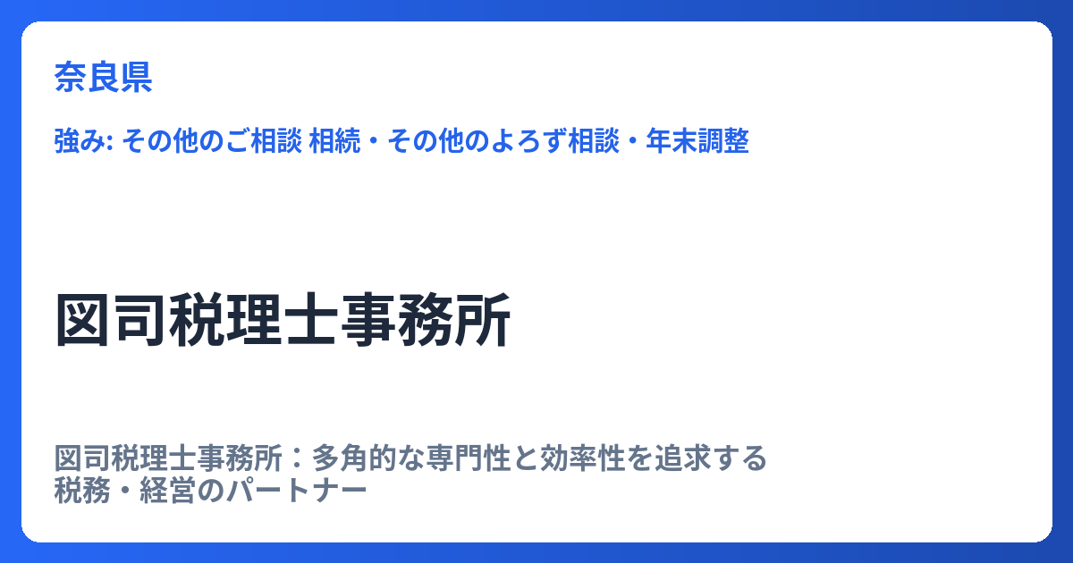 図司税理士事務所:多角的な専門性と効率性を追求する税務・経営のパートナー 税理士事務所の役割は、単なる税務申告の代行に留まりません。企業の成長を支え、複雑化する経営課題に対して的確なアドバイスを提供する、信頼できるビジネスパートナーとして... -
