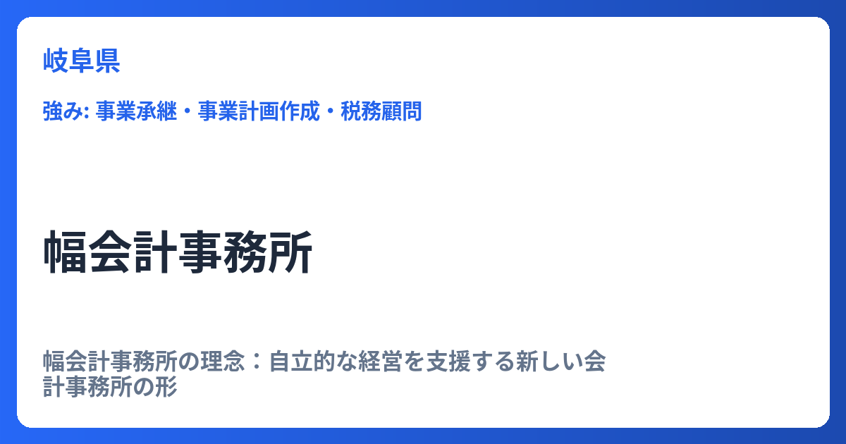 幅会計事務所の理念:自立的な経営を支援する新しい会計事務所の形 多くの企業経営者にとって、会計事務所は欠かせない存在です。しかし、単に記帳代行や税務申告を依頼するだけでなく、より能動的に会社の数字を経営に活かしたいと考える企業が増えていま... -