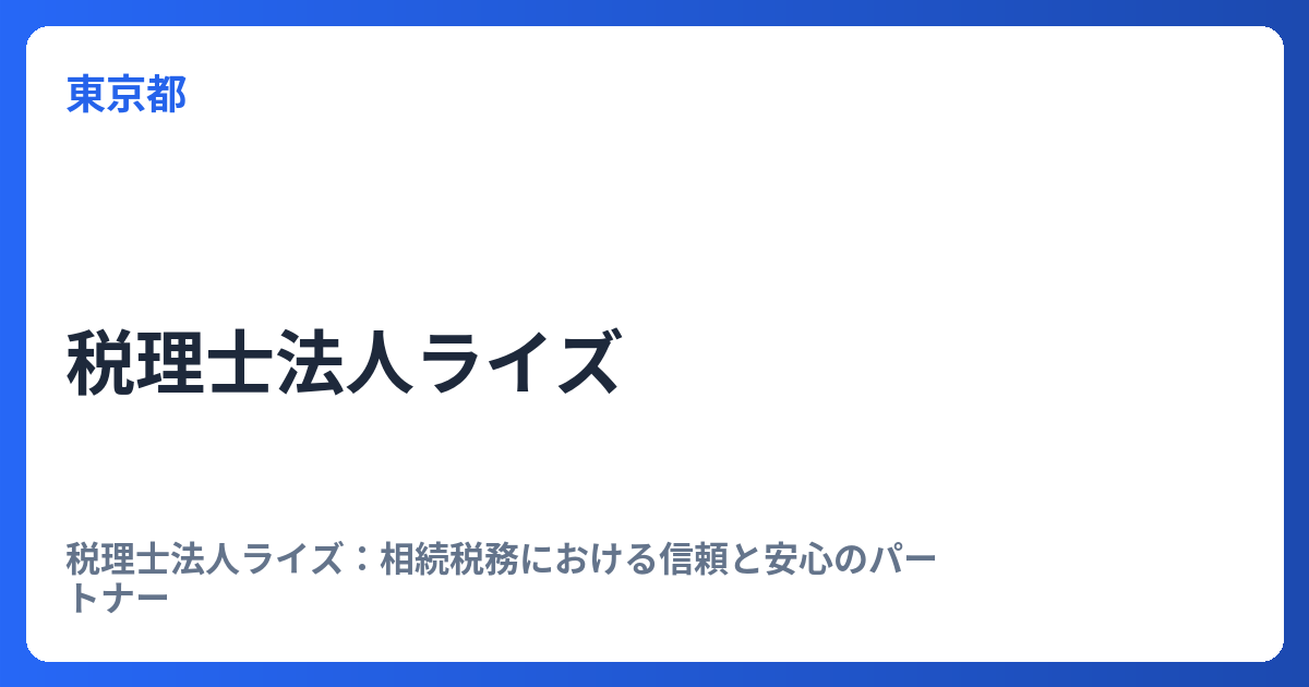 税理士法人ライズ:相続税務における信頼と安心のパートナー 相続に関する課題は、多くの人にとって一生に一度あるかないかの経験であり、その手続きには専門的な知識と冷静な対応が求められます。特に「相続税務」は、法的な側面と複雑な計算が絡み合い、... -