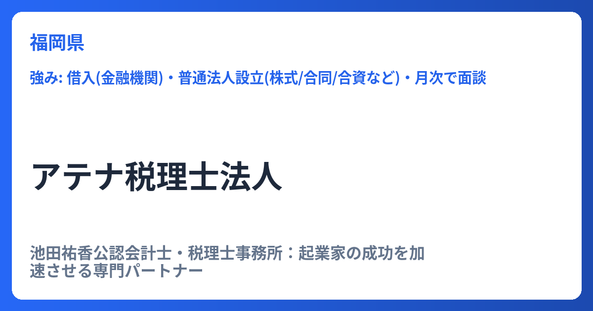 池田祐香公認会計士・税理士事務所:起業家の成功を加速させる専門パートナー 現代のビジネス環境において、特にスタートアップや中小企業にとって、信頼できる会計・税務の専門家の存在は成功の鍵を握ります。複雑化する法規制や急速な経営環境の変化に対... -