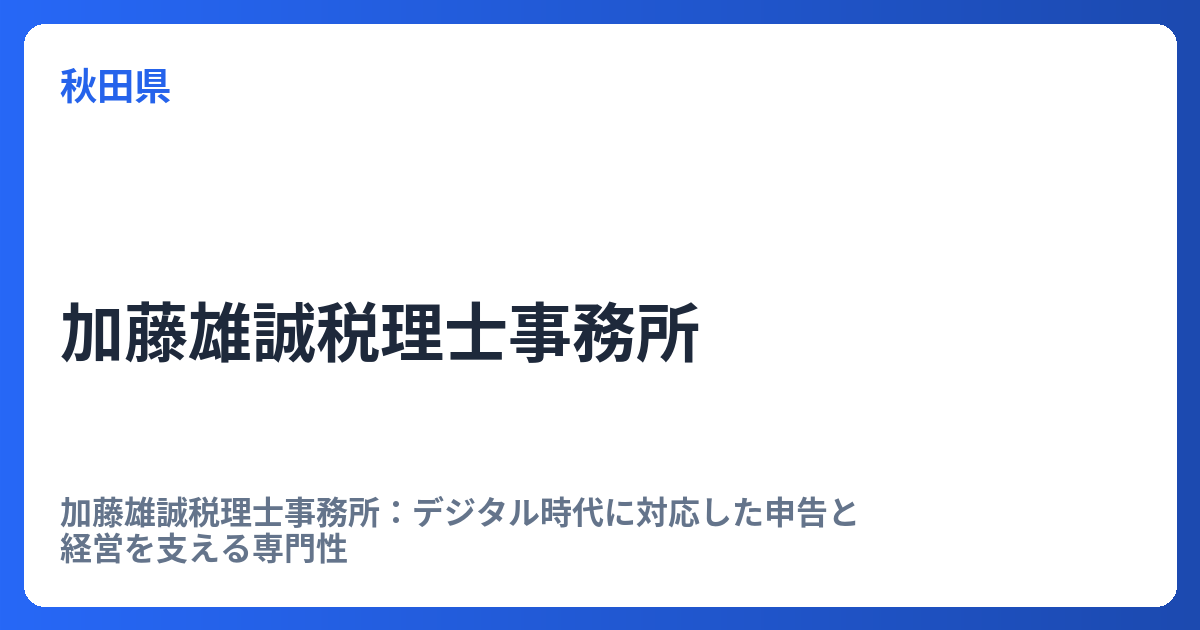 加藤雄誠税理士事務所:デジタル時代に対応した申告と経営を支える専門性 税理士事務所の役割は、単に税務申告を代行するに留まらず、企業の健全な経営をサポートする重要なパートナーとしての地位を確立しています。その中で、加藤雄誠税理士事務所は、最...