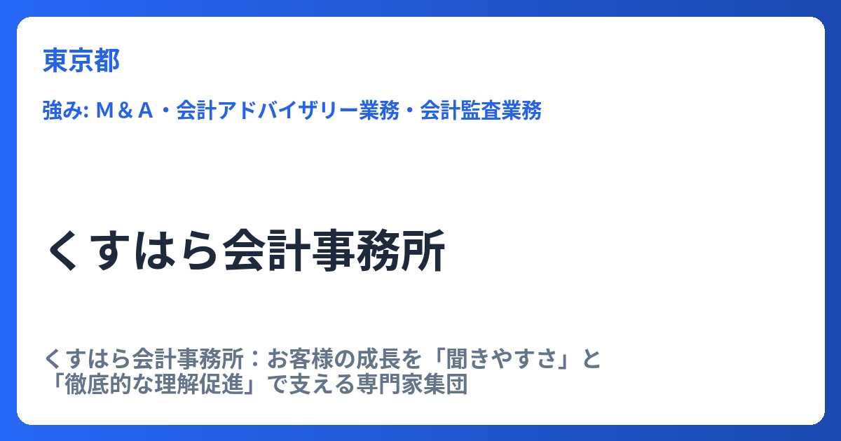 顧客の課題解決において、当事務所の専門領域外のサポートが必要と判断された場合、信頼できる弁護士、司法書士、社会保険労務士、行政書士、不動産鑑定士、さらには特定の分野に特化した税理士など、最適な専門家を速やかに紹介できる体制が整っています。これにより、ワンストップで経営課題を解決するサポートを提供し、顧客満足度の向上を実現しています。