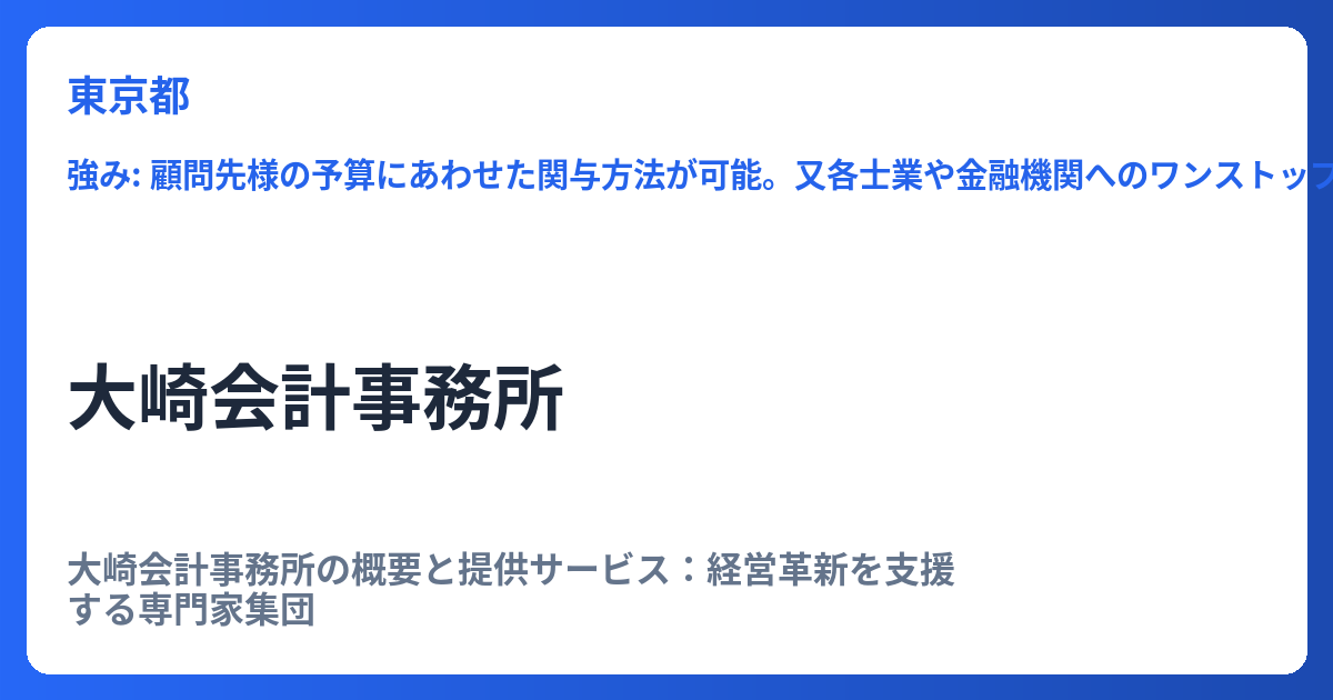 会計・税務業務に留まらず、企業の健全な成長を促すための経営コンサルティング業務にも注力しており、クライアントの状況に応じたきめ細やかなサポートを提供することで、事業の安定と発展に貢献しています。