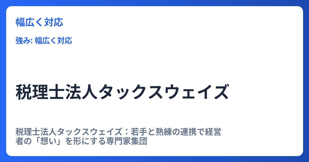特に、成長企業においては、事業規模の拡大に伴い、税務リスクの管理や内部統制の強化、さらには資金調達といった高度な経営課題が次々と発生します。同事務所は、これらの課題に対し、長年の経験と実績に基づいた実践的なアドバイスを提供し、企業の持続的な成長を力強くバックアップします。