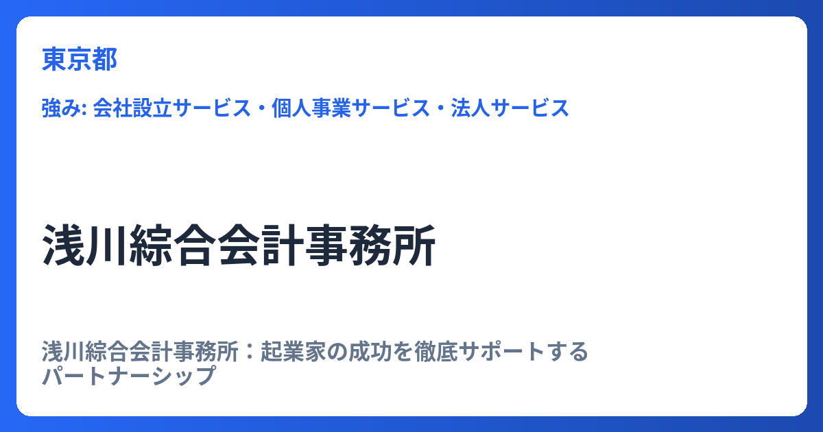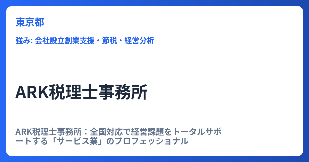 - 得意分野:法人決算、記帳代行といった基本的な業務に加え、複雑な税務相談や、スタートアップ企業に不可欠な開業(起業)支援にも注力しています。特に、起業初期段階の事業計画策定から資金調達、税務手続きまでを一貫してサポートできる体制は、多くの事業主にとって大きなメリットとなります。