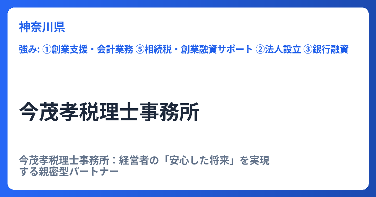 「費用を心配せずに、まずは気軽に声をかけてほしい」というメッセージからは、コストパフォーマンスの高さだけでなく、顧客との敷居を低くし、気軽に相談できるパートナーでありたいという強い思いが伝わってきます。事業の規模やフェーズを問わず、税務・経営に関する不安を抱えるすべての方にとって、アクセスしやすい事務所です。