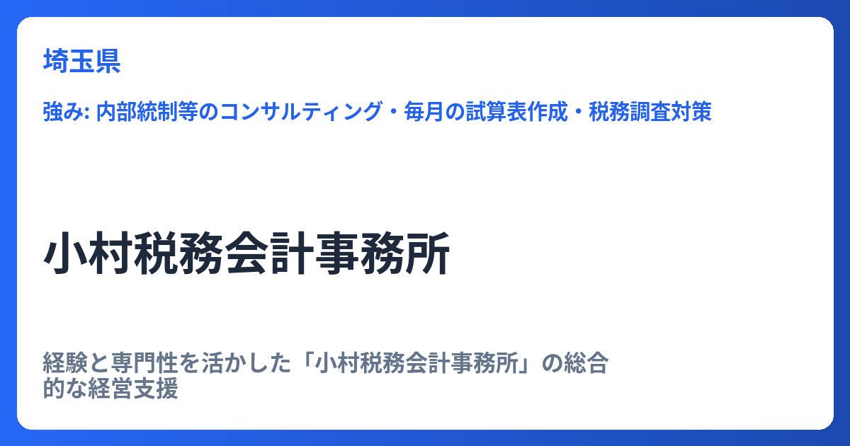 同事務所は、地元の埼玉県越谷市を中心に、地域に密着した活動を展開しています。地域経済の発展に貢献するという強い思いから、活動範囲は越谷市に留まらず、以下の広範囲に及びます。