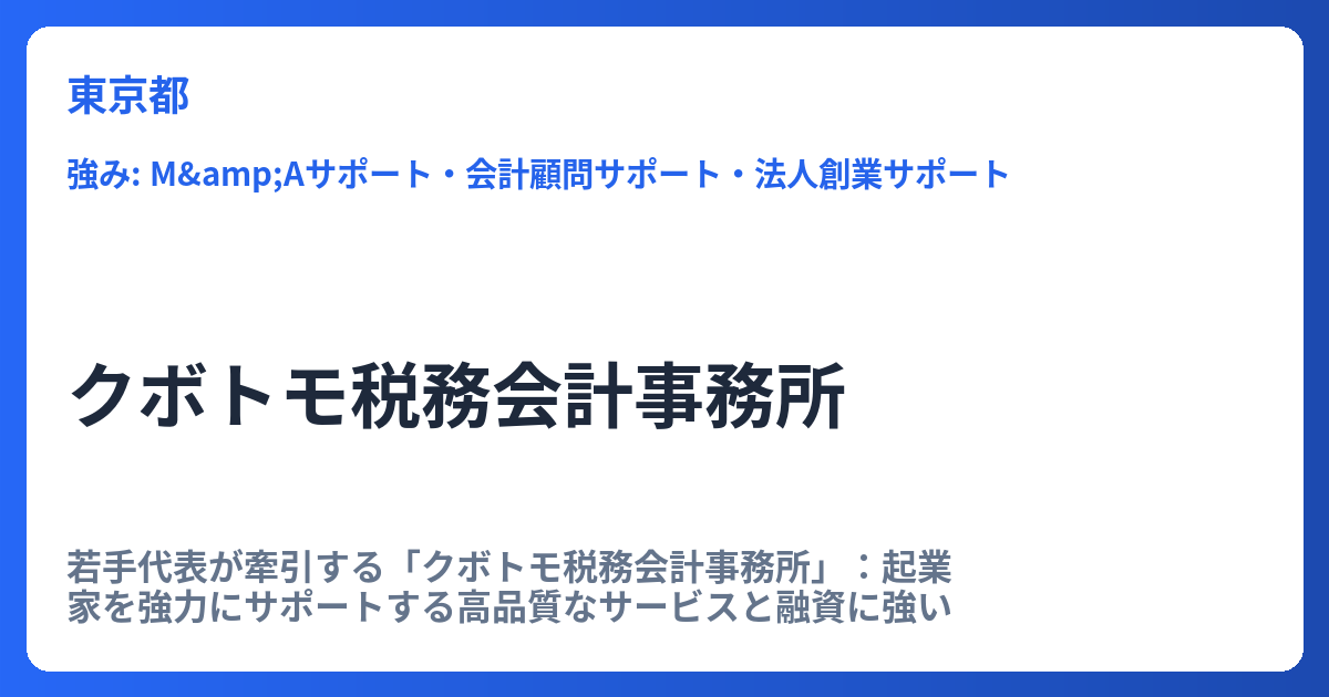 同事務所は、単なる税金計算や申告代行にとどまらず、事業の成長に直結する幅広いノウハウを提供することで、経営者の皆様の最も信頼できるパートナーとなることを目指しています。