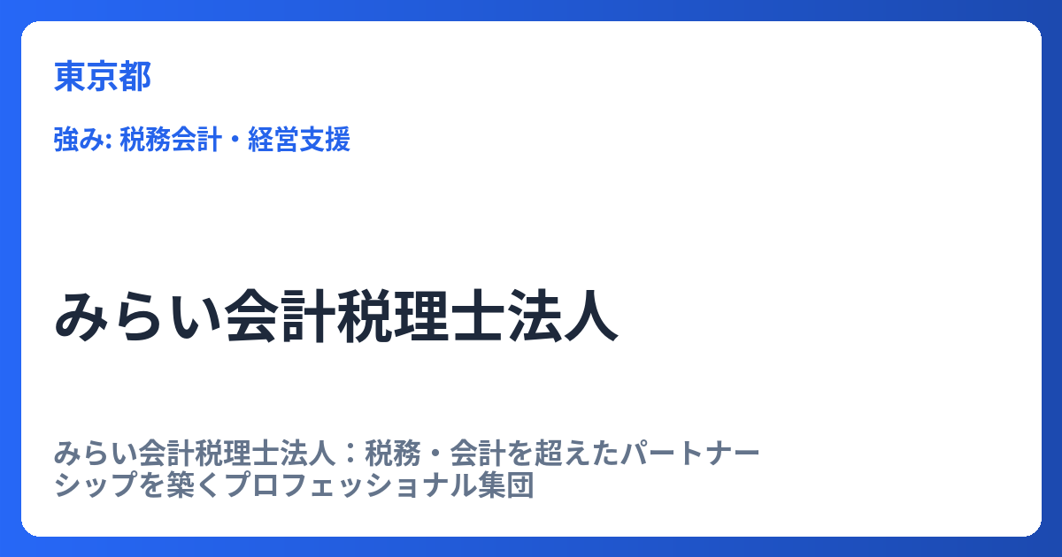 • 単なる過去の数字の処理ではなく、将来を見据えた戦略的な視点を提供し、経営や資産承継をサポートします。