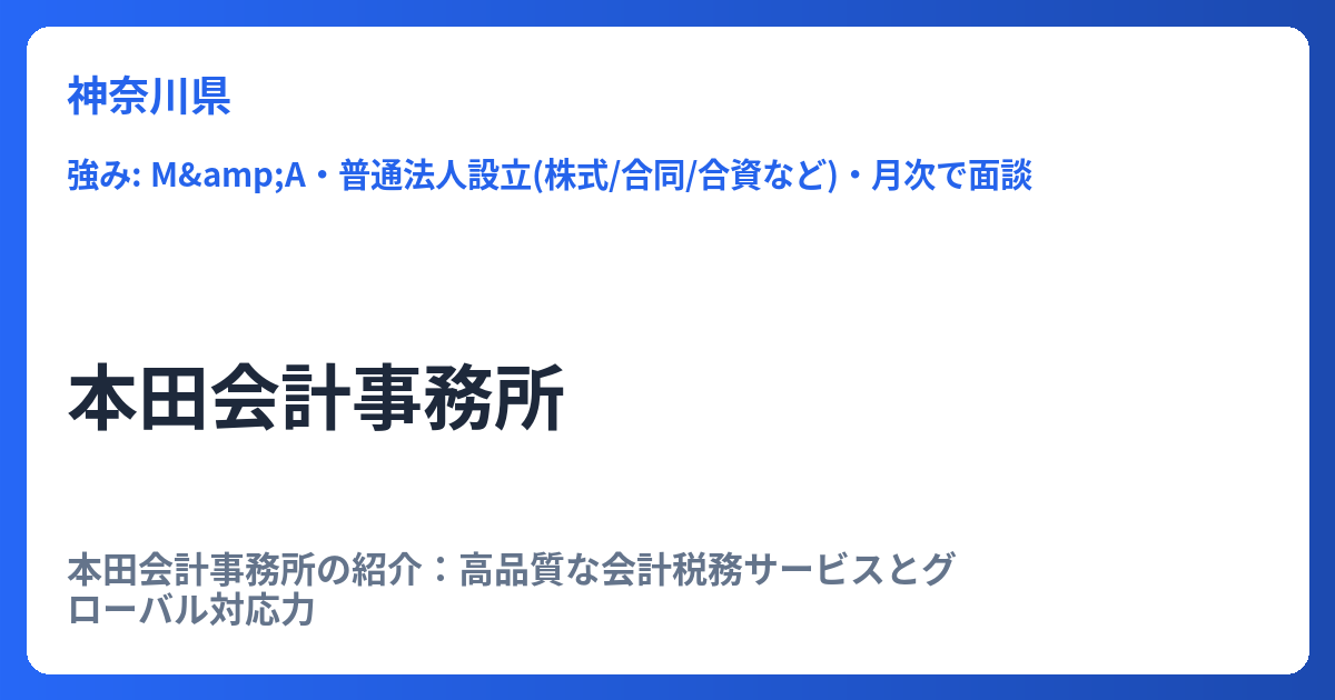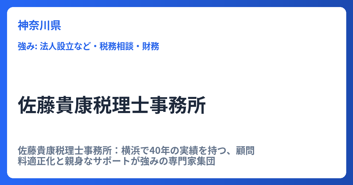 神奈川県厚木市に拠点を置く小林磨寿美税理士事務所は、2001年の開設以来、長きにわたり地域経済を支える中小・中堅企業、そして個人納税者の皆様に対する質の高い税務サポートを提供し続けています。単なる税務申告の代行に留まらず、事務所が掲げる「豊富な税知識」と「進取の精神」に基づき、顧客の事業発展と資産防衛を全力で支援しています。
