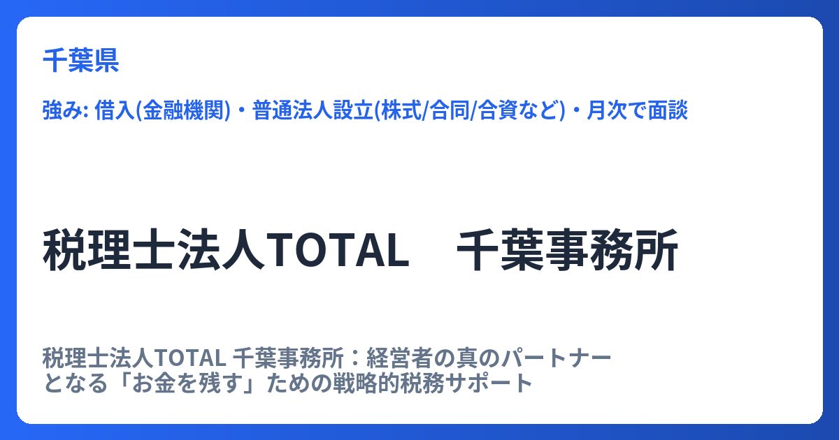 税理士法人TOTAL 柏事務所の徹底解説:中小企業の成長を支える戦略的パートナー