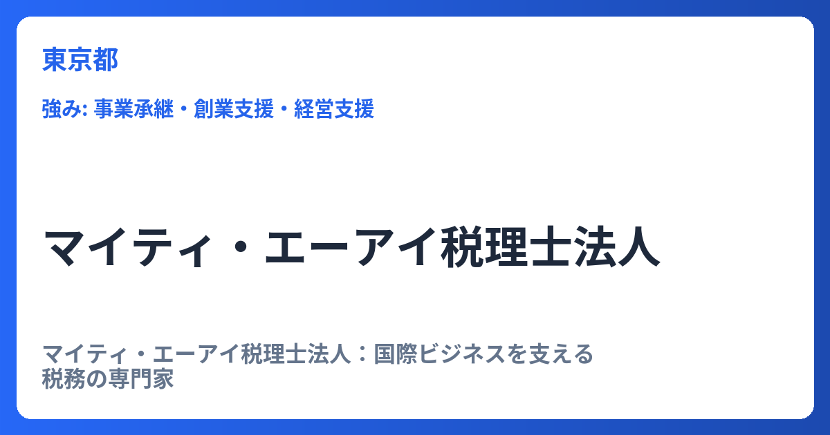 - 税理士磯部和郎事務所(大田区): 東京都大田区大森西に所在地を持つ事務所です。地域の中小企業や個人に対する一般的な税務・会計サポートを提供していると考えられます。