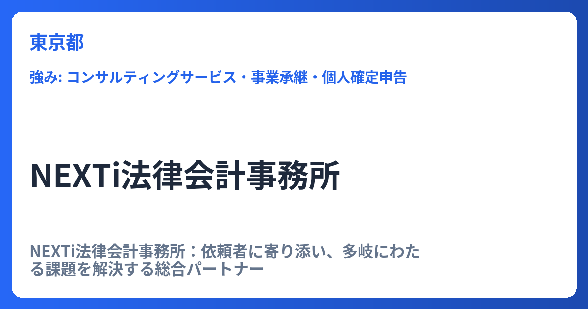 • 一貫した対応:担当者が頻繁に変わることがなく、依頼者の状況や事業の特性を深く理解した上で、長期的な視点に立ったアドバイスが可能となります。