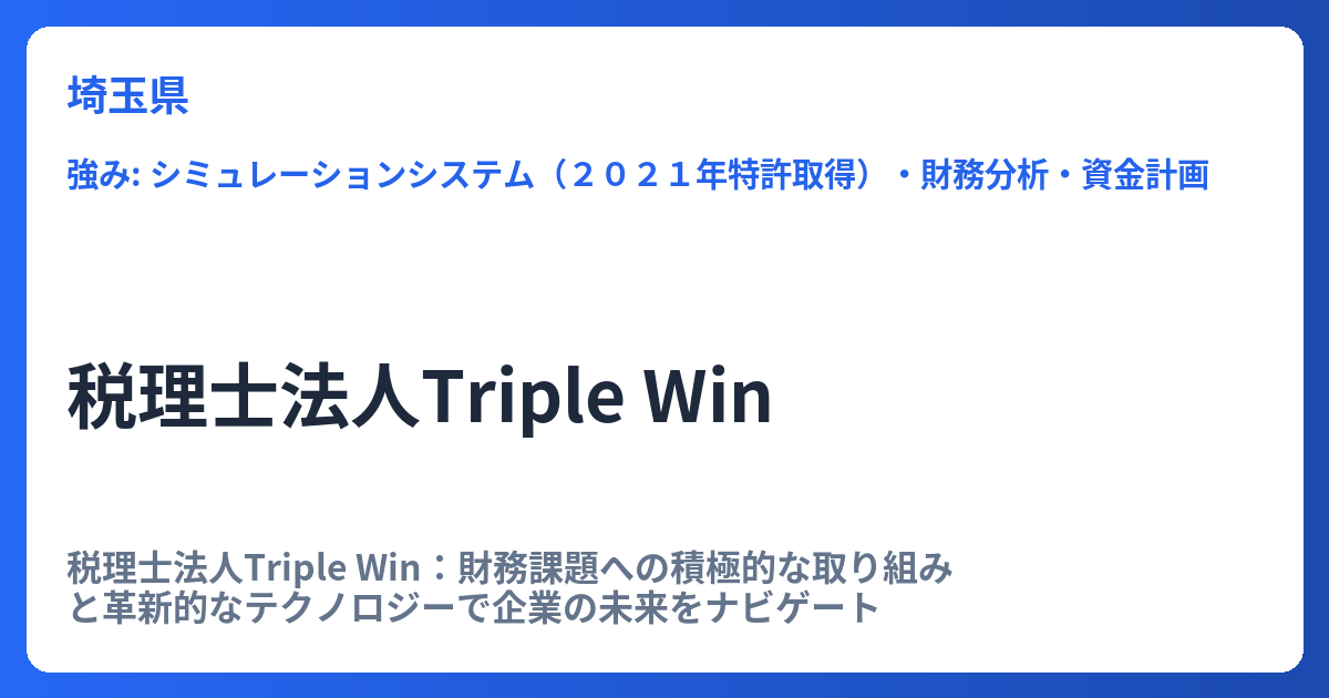 同事務所は、川越密着型の体制を強みとしています。地域ビジネスの特性を深く理解し、単なる顧問ではなく、経営者の「地域の番頭さん業務」として、親身かつ迅速に対応します。