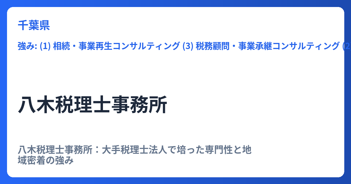 業務の核となるのは、中小企業の決算・申告業務に加え、その先の黒字化支援です。さらに、創業支援から各種税金対策(贈与税、相続税、所得税、固定資産税など)、会社法関連の助言まで、企業経営者が直面する多岐にわたる課題に対応する総合的なサポート体制を構築しています。