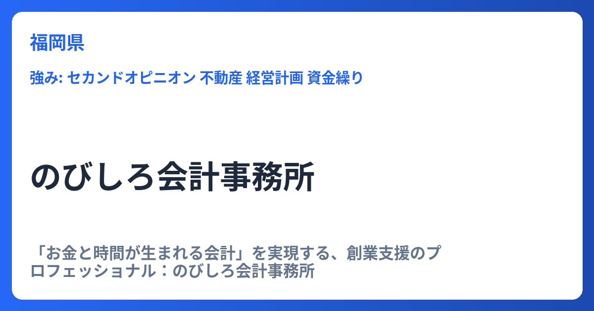 これらのモットーは、クライアントが安心して経営や資産管理を任せられる、同事務所の信頼性の基盤となっています。福岡市博多区で税務・会計の専門パートナーをお探しの方にとって、同事務所は最適な選択肢の一つとなるでしょう。