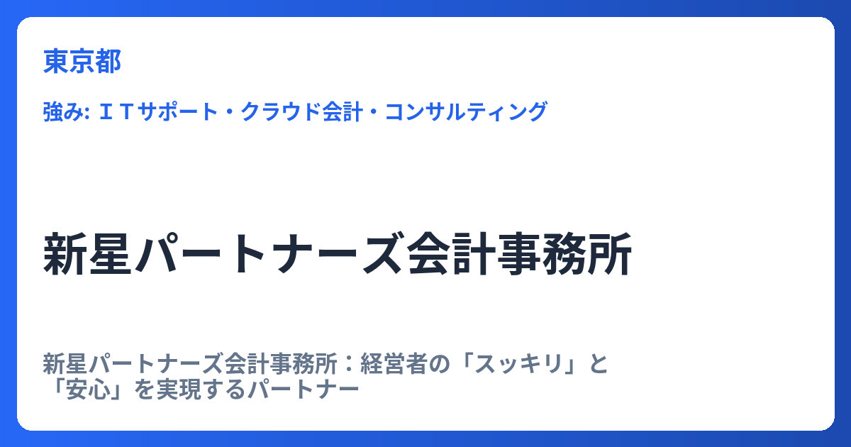- 提供価値:行政手続き代行に留まらず、中長期的なビジネス成長を支援。