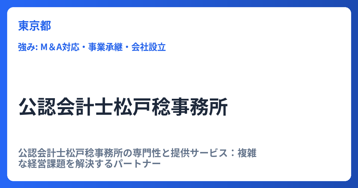 粟澤元博税理士事務所は、「公認会計士」としての監査経験と、「税理士」としての税務・会計実務能力を融合させた、ハイブリッドな専門性を持つ事務所として評価できます。特に、時代の変化に伴う新たな課題(例:インボイス制度や電子帳簿保存法対応など)についても、最新の専門知識に基づいた適切なアドバイスが期待できるでしょう。