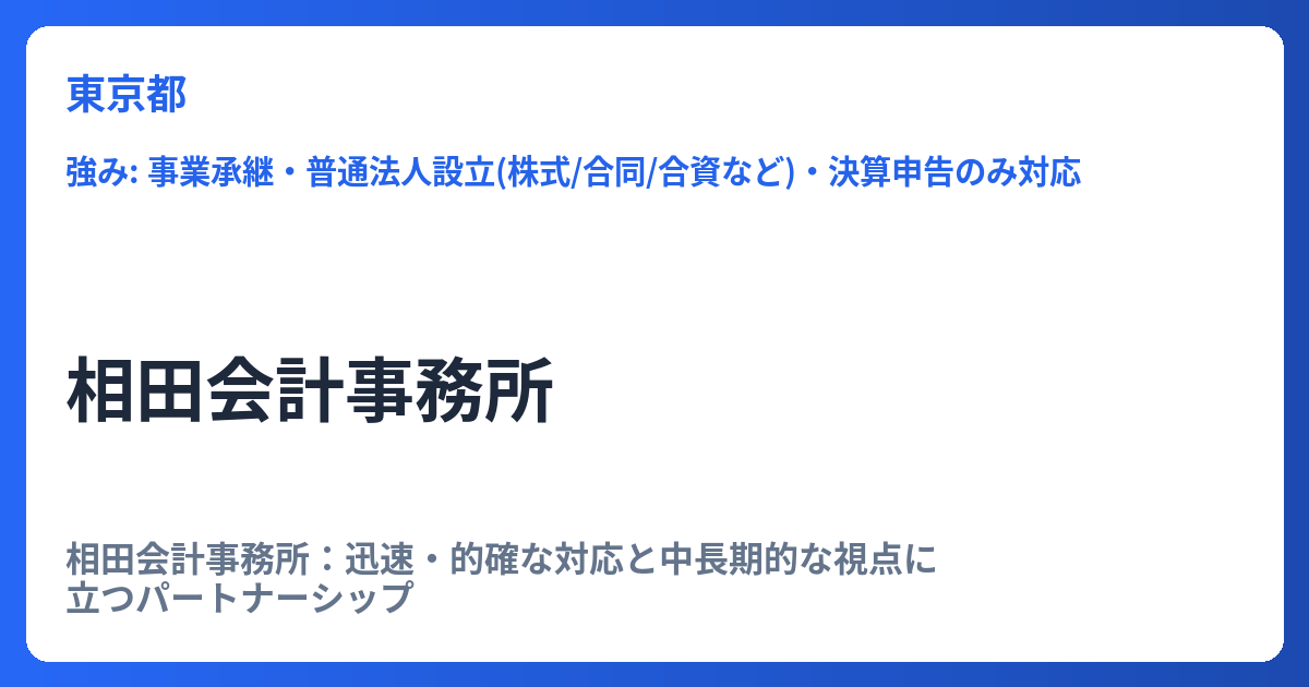 • 開業・会社設立: 事業開始に向けた最適な法人形態の選択から設立手続きまでを一貫してサポートします。